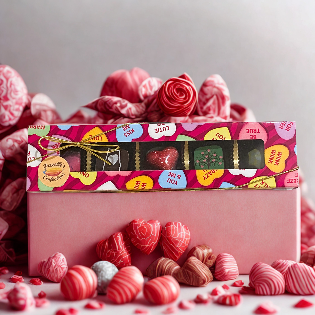 - For Her: A 5-Piece Artisan Chocolate Box from Pizzelle's Confections.